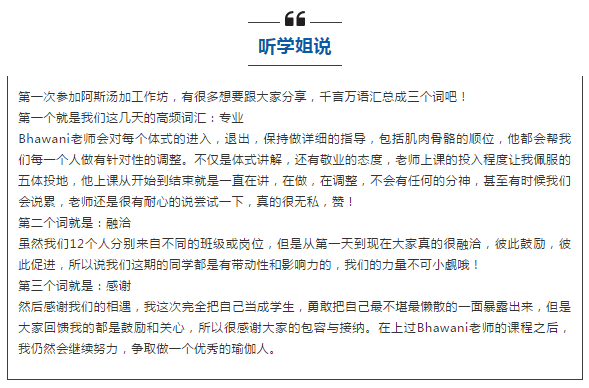 2017年6月在美俪阿萨娜瑜伽学校开设以阿斯汤加为课题的工作坊。